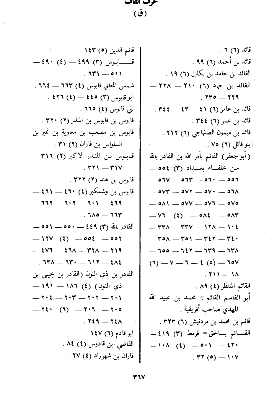 القائم بالحق قرمط (3) 419 420- 501- (4) 108 107- (5) 32. قائم الدين (5) 143.