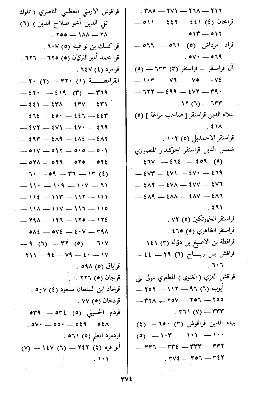 آل قراسنقر- قراسنقر (3) 633- (5) 74- 75- 76- 103- 390- 472- 499- 622- 633- (6) 12.