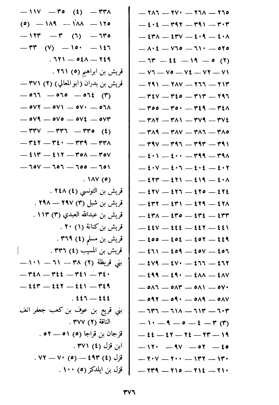قريش بن بدران (ابو المعالي) (2) 371- (3) 564- 565- 566- 568- 570- 571- 572- 573- 574- 575- 579- (4) 335- 336- 337- 338- 339- 340- 342- 357- 358- 412- 413- 651- 655- 656- 657- (5) 187.