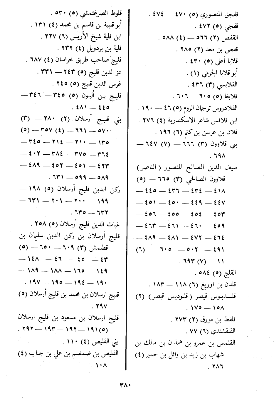 بني قليج أرسلان (2) 280- (3) 570- 661- (4) 357- (5) 135- 210- 214- 345- 364- 375- 384- 402- 423- 451- 452- 489- 589- 599- 631.