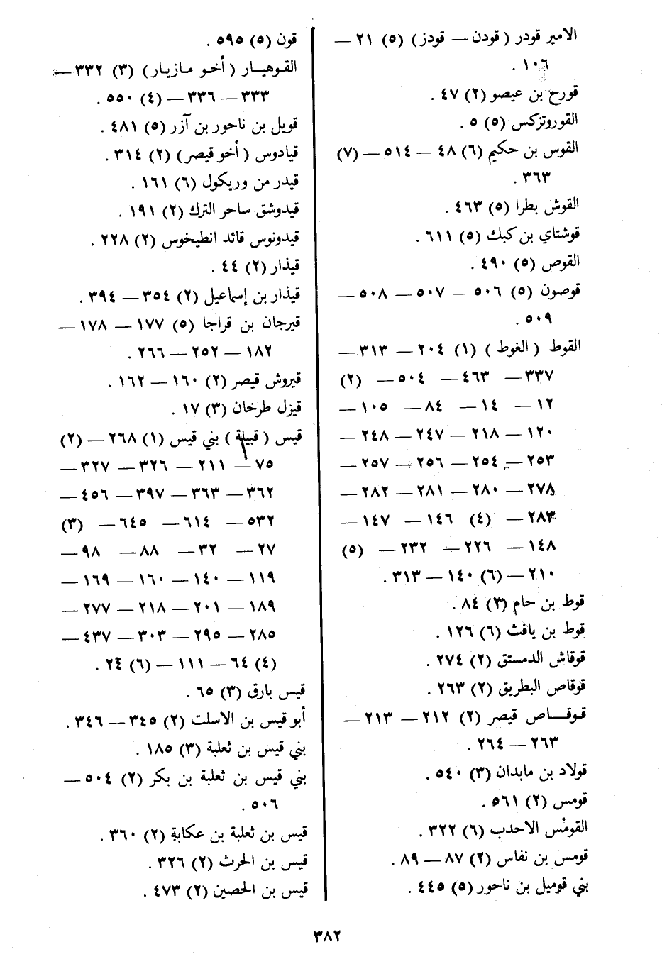 قيس (قبيلة) بني قيس (1) 268- (2) 75- 211- 326- 327- 362- 363- 397- 456- 532- 614- 645- (3) 27- 32- 88- 98- 119- 140- 160- 169- 189- 201- 218- 277- 285- 295- 303- 437- (4) 64- 111- (6) 24.
