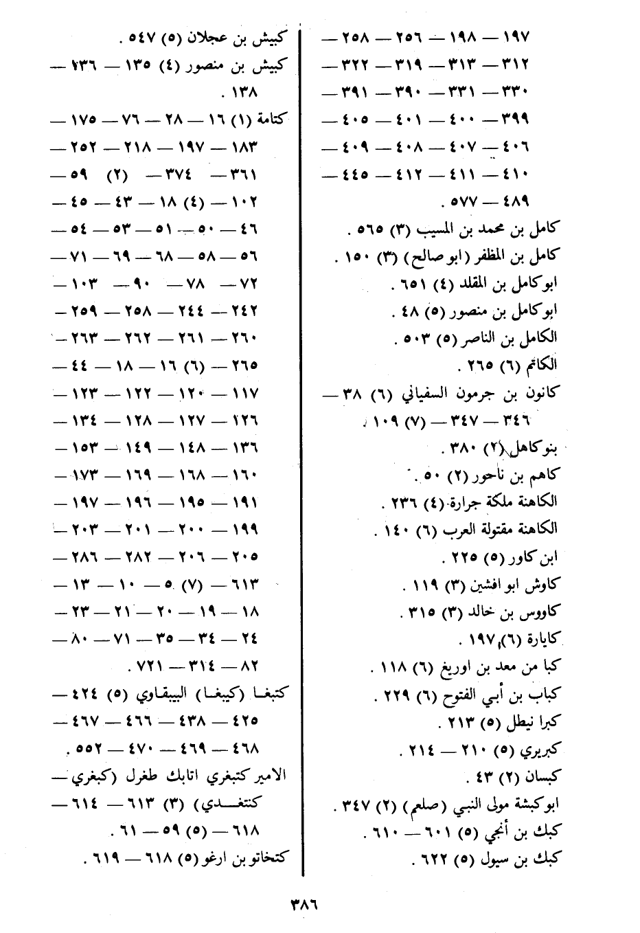 كتامة (1) 16- 28- 76- 175- 183- 197- 218- 252- 361- 374- (2) 59- 102- (4) 18- 43- 45- 46- 50- 51- 53- 54- 56- 58- 68- 69- 71- 72- 78- 90- 103- 242- 244- 258- 259- 260- 261- 262- 263- 265- (6) 16- 18- 44- 117- 120- 122- 123- 126- 127- 128- 134- 136- 148- 149- 153- 160- 168- 169- 173- 191- 195- 196- 197- 199- 200- 201- 203- 205- 206- 282- 286- 613- (7) 5- 10- 13- 18- 19- 20- 21- 23- 24- 34- 35- 71- 80- 82- 314- 721.