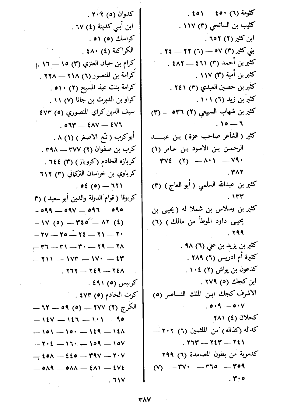 كثير (الشاعر صاحب عزة) بن عبد الرحمن بن الأسود بن عامر (1) 790- 801- (2) 374- 382.
