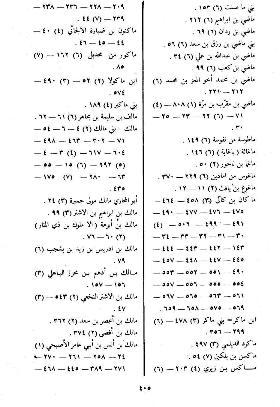 مالك بني مالك (2) 4- 6- 54- 71- 302- 463- 498- 604- 617- (4) 3- 4- (5) 292- (6) 15- 55- 63- 280- (7) 175- 435.