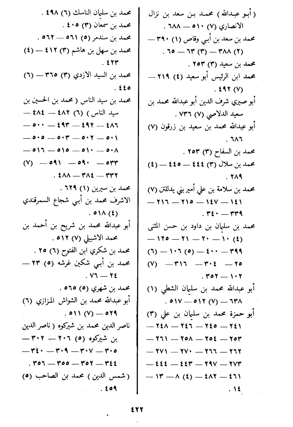 محمد بن سيد الناس (محمد بن الحسين بن سيد الناس) (6) 482- 484- 486- 492- 493- 500- 501- 502- 503- 505- 508- 510- 515- 516- 533- 590- 591- (7) 332- 384- 488.