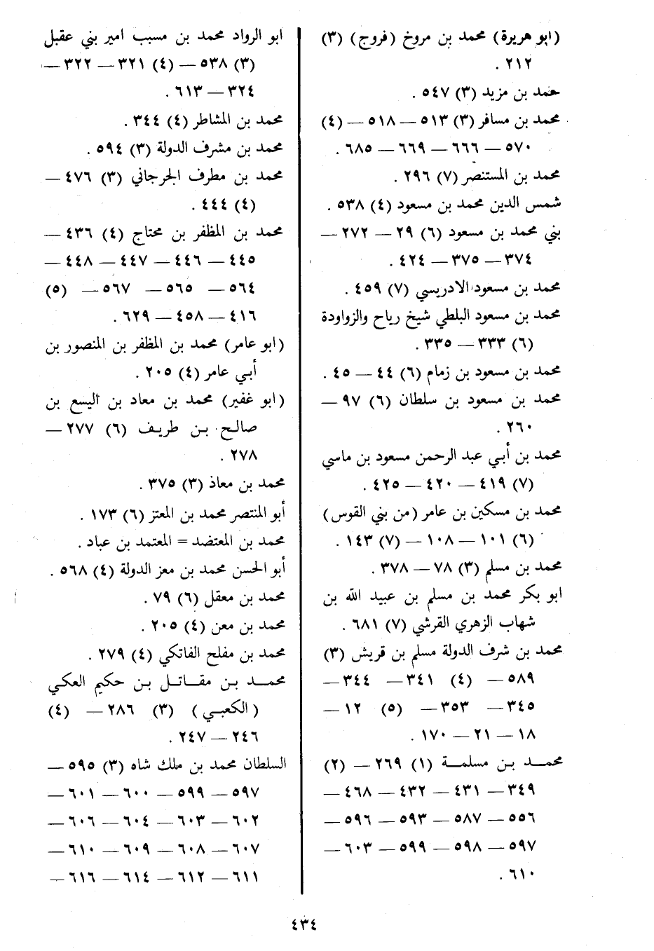 محمد بن مسافر (3) 513- 518- (4) 570- 666- 669- 685.