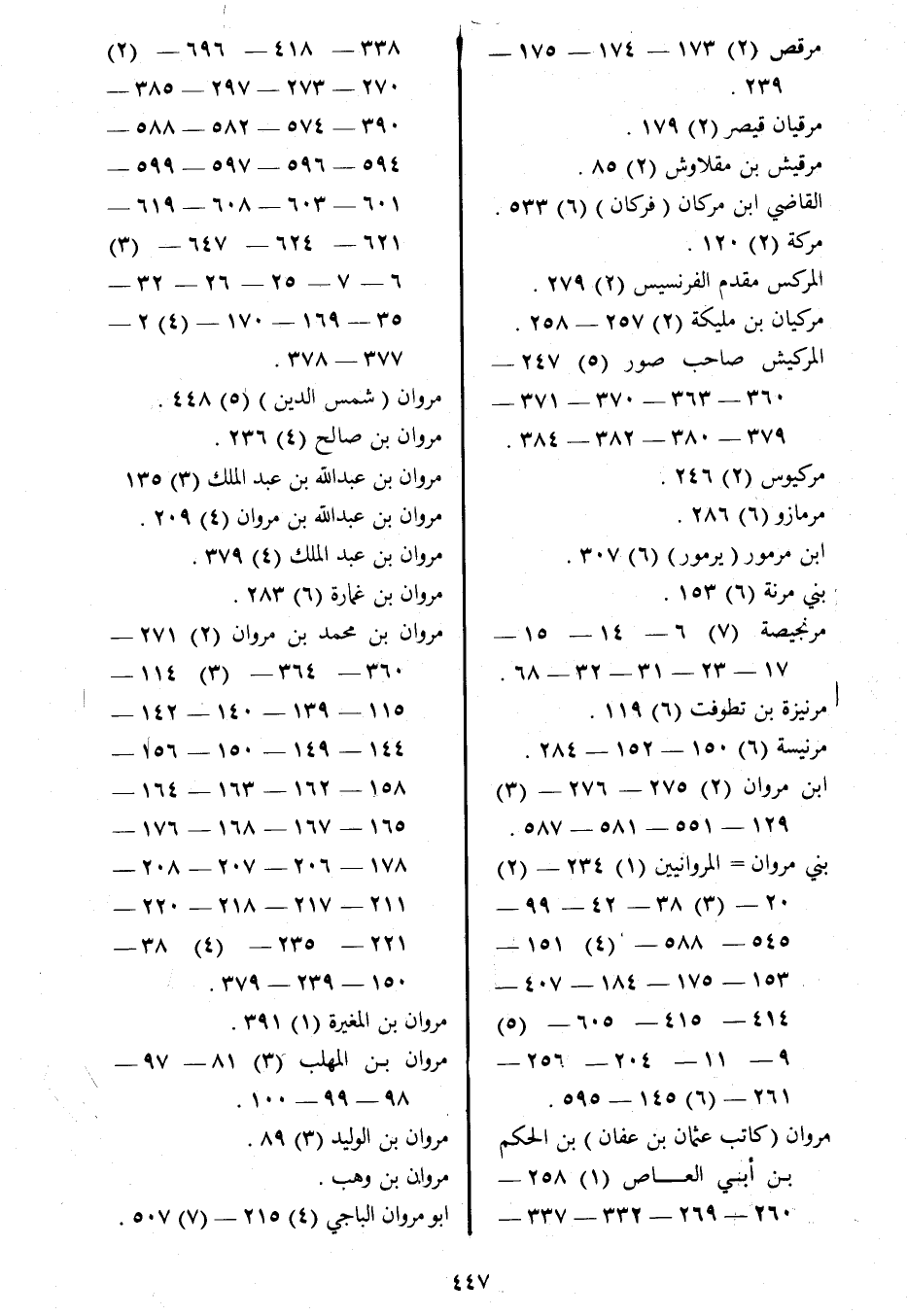 بني مروان المروانيين (1) 234- (2) 20- (3) 38- 42- 99- 545- 588- (4) 151- 153- 175- 184- 407- 414- 415- 605- (5) 9- 11- 204- 256- 261- (6) 145- 595.