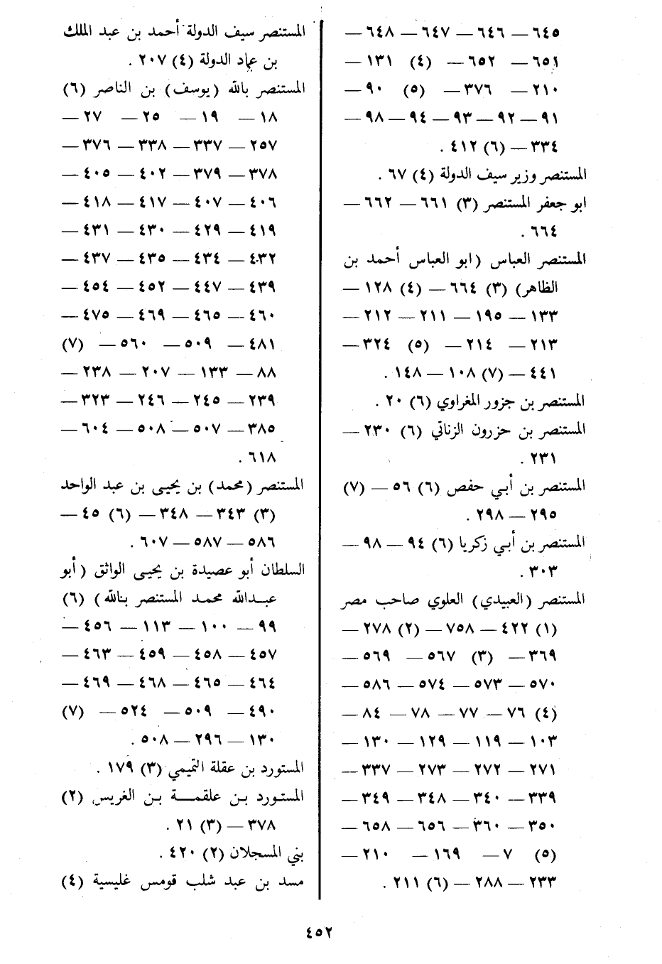 المستنصر باللَّه (يوسف) بن الناصر (6) 18- 19- 25- 27- 257- 337- 338- 376- 378- 379- 402- 405- 406- 407- 417- 418- 419- 429- 430- 431- 432- 434- 435- 437- 439- 447- 452- 454- 460- 465- 469- 475- 481- 509- 560- (7) 88- 133- 207- 238- 239- 245- 246- 323- 385- 507- 508- 604- 618.