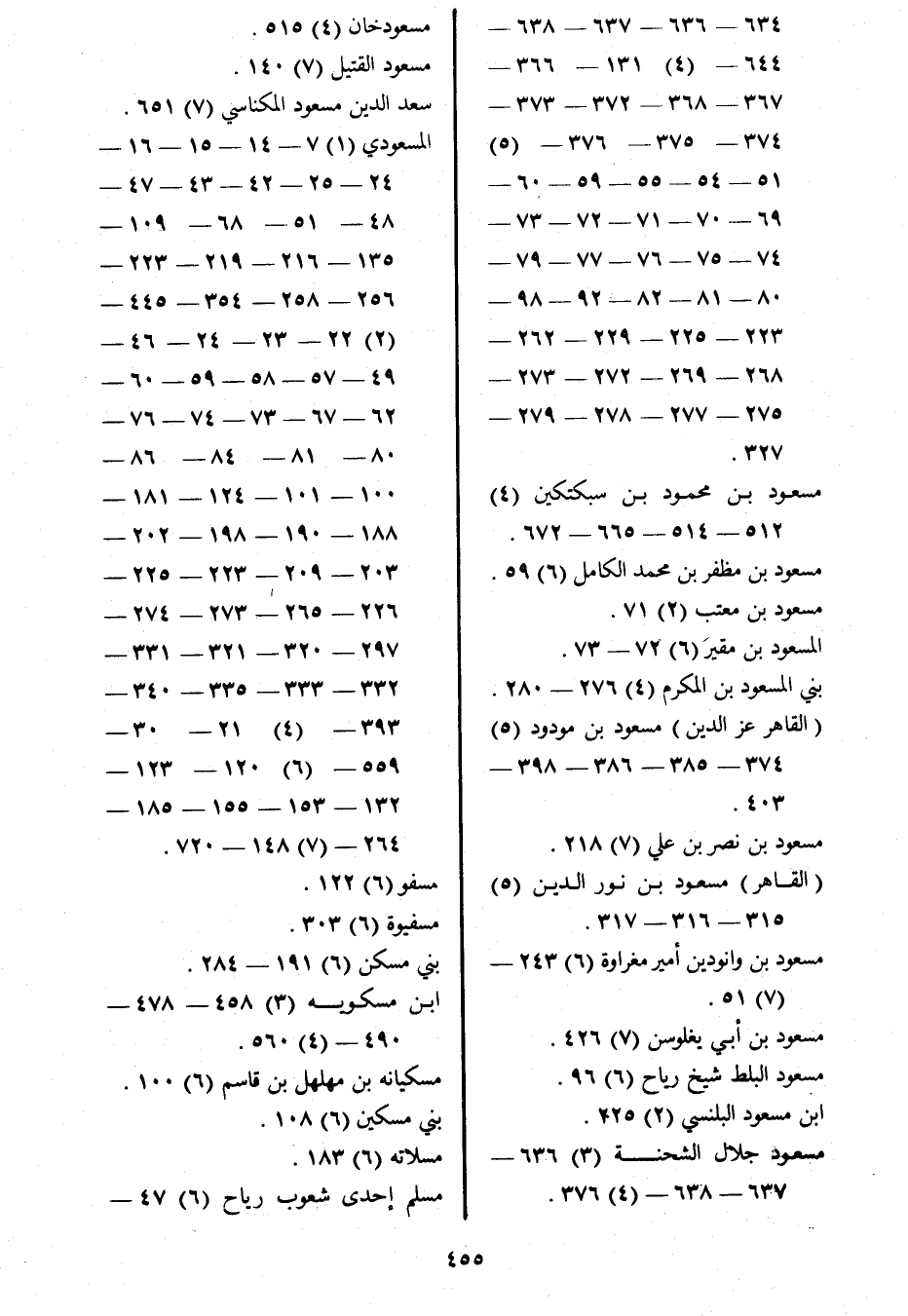المسعودي (1) 7- 14- 15- 16- 24- 25- 42- 43- 47- 48- 51- 68- 109- 135- 216- 219- 223- 256- 258- 354- 445- (2) 22- 23- 24- 46- 49- 57- 58- 59- 60- 62- 67- 73- 74- 76- 80- 81- 84- 86- 100- 101- 124- 181- 188- 190- 198- 202- 203- 209- 223- 225- 226- 265- 273- 274- 297- 320- 321- 331- 332- 333- 335- 340- 393- (4) 21- 30- 559- (6) 120- 123- 132- 153- 155- 185- 264- (7) 148- 720.