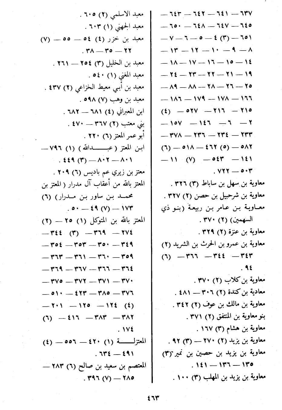 المعتز باللَّه بن المتوكل (1) 25- (2) 274- 369- (3) 344- 349- 350- 353- 354- 359- 360- 361- 363- 364- 366- 367- 369- 370- 371- 372- 375- 376- 385- 423- 510- (4) 124- 125- 201- 382- 383- 416- (6) 174.