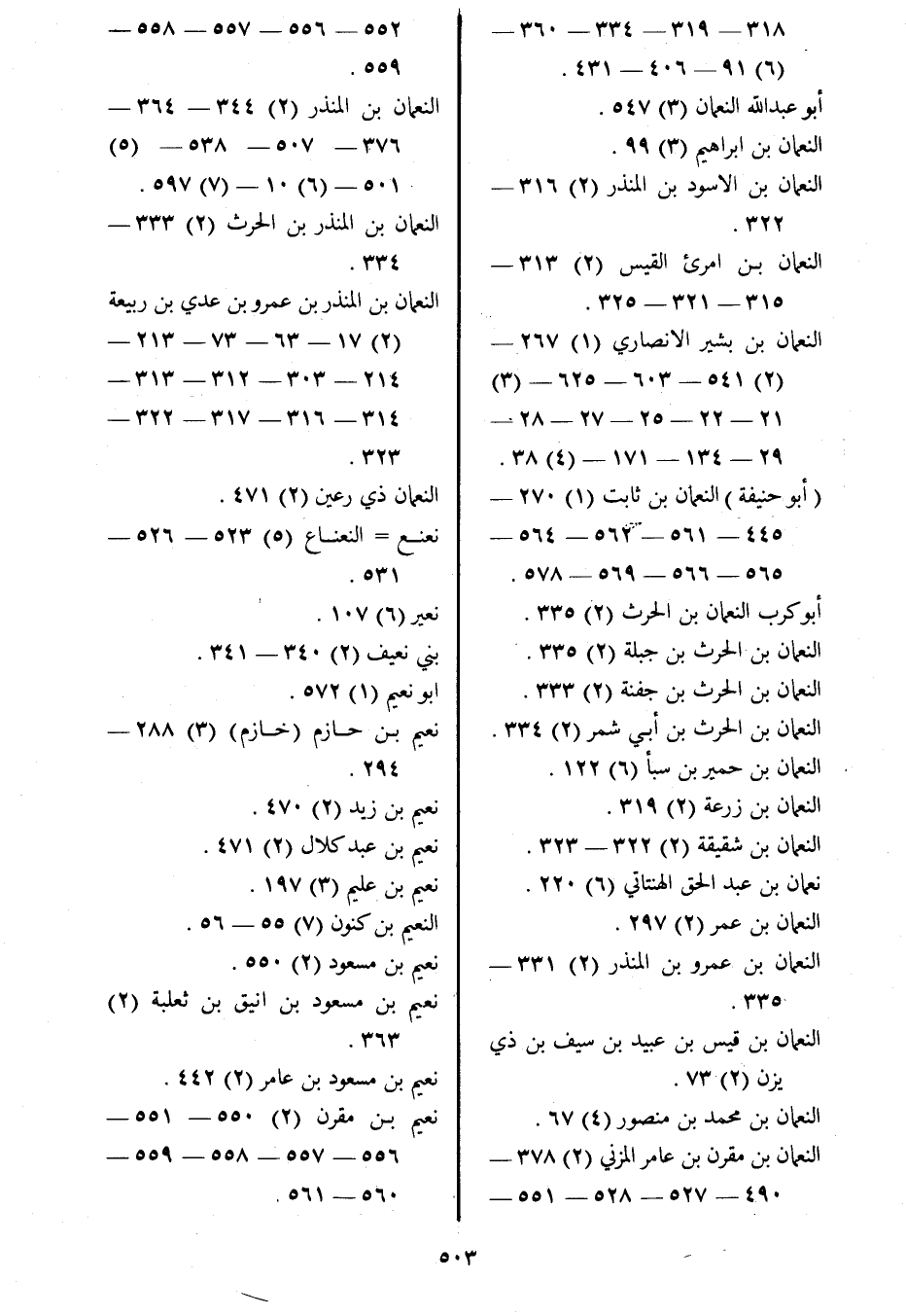 النعمان بن المنذر بن عمرو بن عدي بن ربيعة (2) 17- 63- 73- 213- 214- 303- 312- 313- 314- 316- 317- 322- 323.
