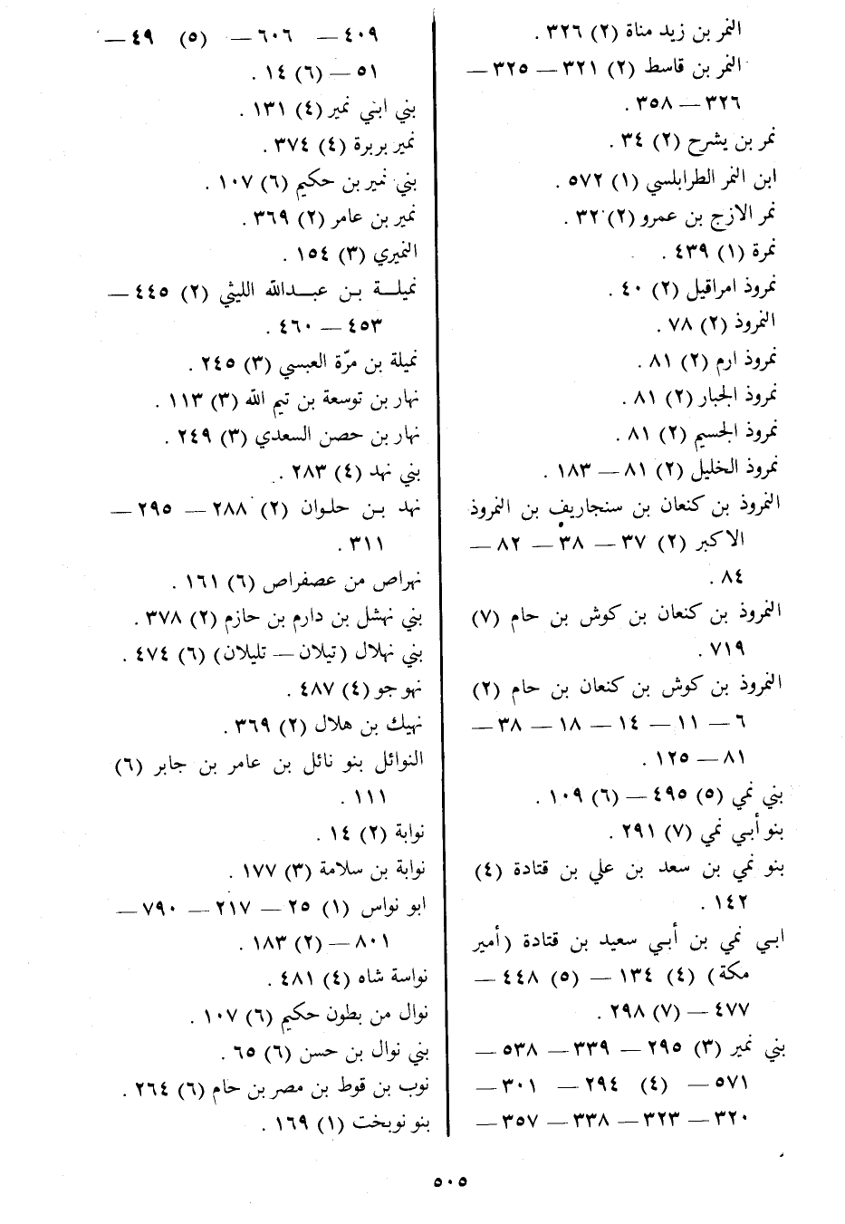 بني نمير (3) 295- 339- 538- 571- (4) 294- 301- 320- 323- 338- 357- 409- 606- (5) 49- 51- (6) 14.