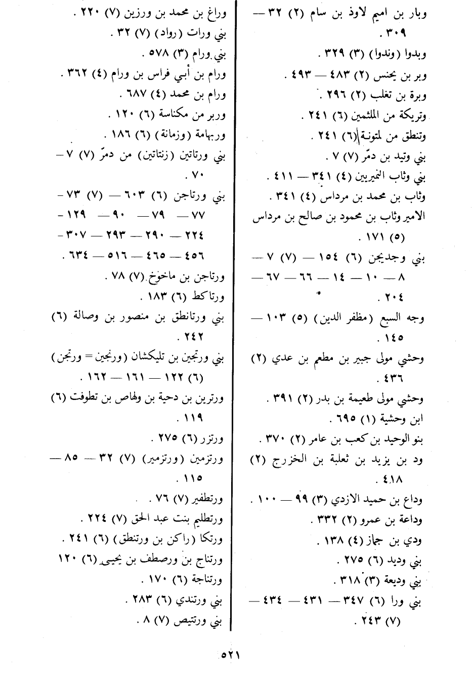 بني ورتاجن (6) 603- (7) 73- 77- 79- 90- 129- 224- 290- 293- 307- 456- 465- 516- 634.