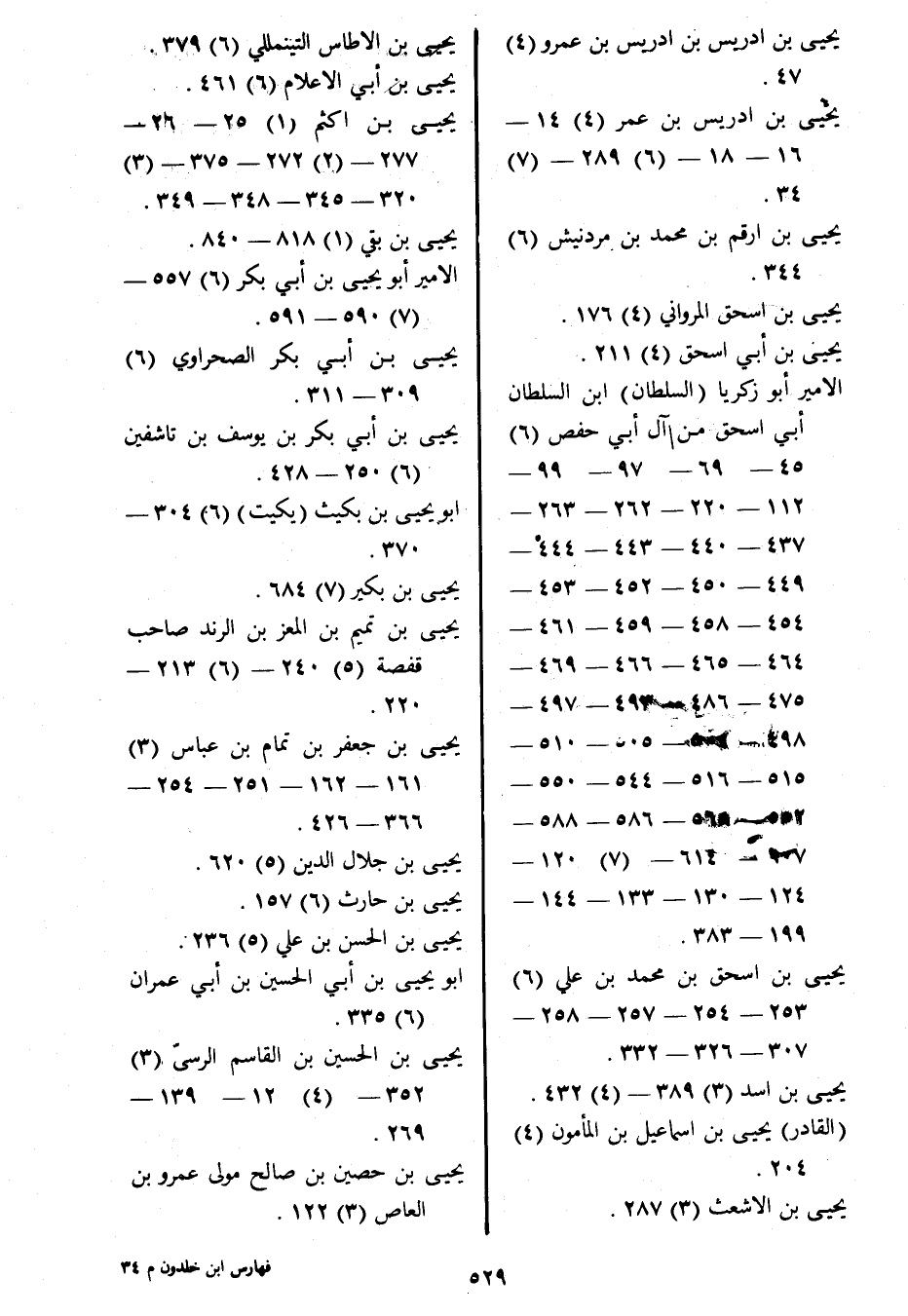 يحيى بن إدريس بن عمر (4) 14- 16- 18- (6) 289- (7) 34.