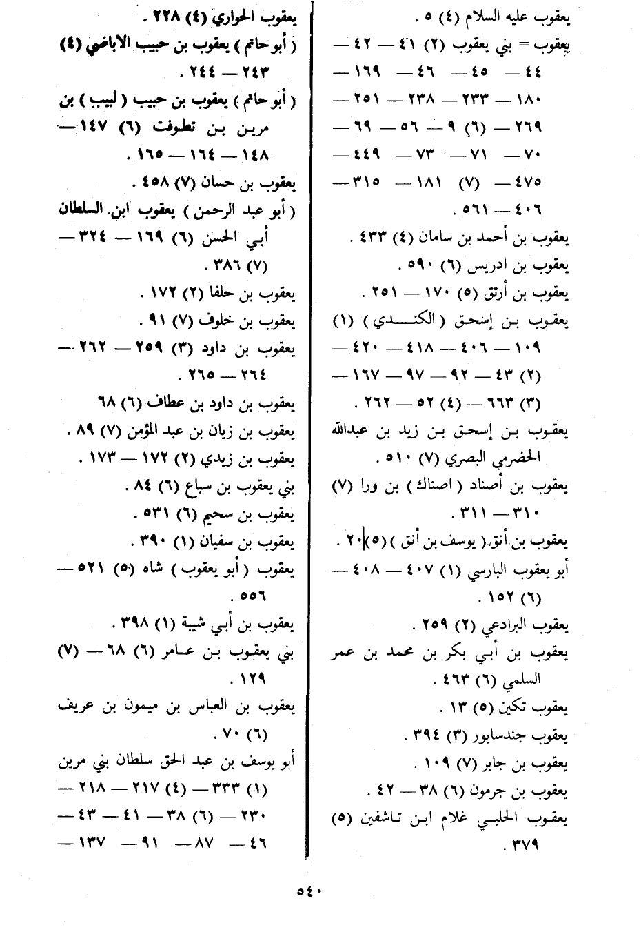 يعقوب بني يعقوب (2) 41- 42- 44- 45- 46- 169- 180- 233- 238- 251- 269- (6) 9- 56- 69- 70- 71- 73- 449- 475- (7) 181- 315- 406- 561.