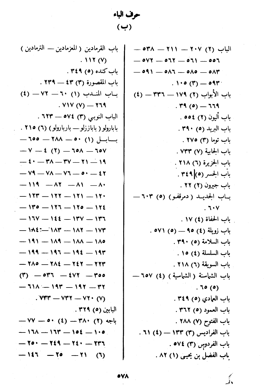 حرف الباء (ب) الباب (2) 207- 211- 538- 556- 561- 562- 572- 583- 585- 586- 591- 593- (3) 105.