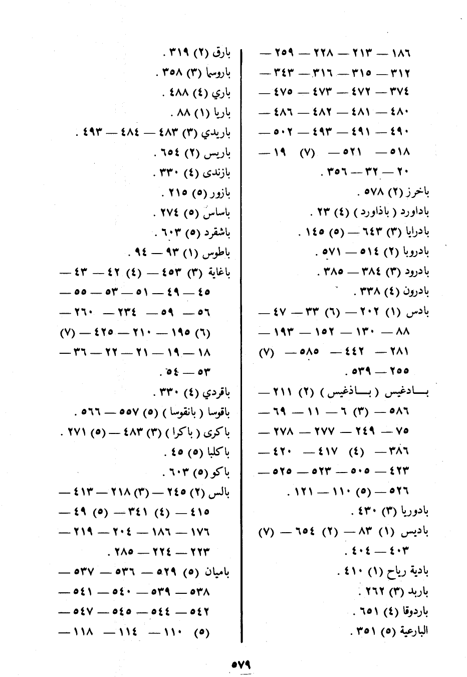 باغاية (3) 453- (4) 42- 43- 45- 49- 51- 53- 55- 56- 59- 234- 260- (6) 195- 210- 425- (7) 18- 19- 21- 22- 36- 53- 54.