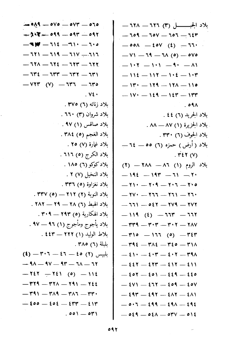 بلاد الجبل (3) 626- 628- 643- 656- 657- 659- 660- (4) 457- 558- 575- (5) 68- 69- 71- 81- 90- 101- 102- 103- 104- 112- 114- 115- 128- 129- 130- 133- 143- 149- 170- 598.