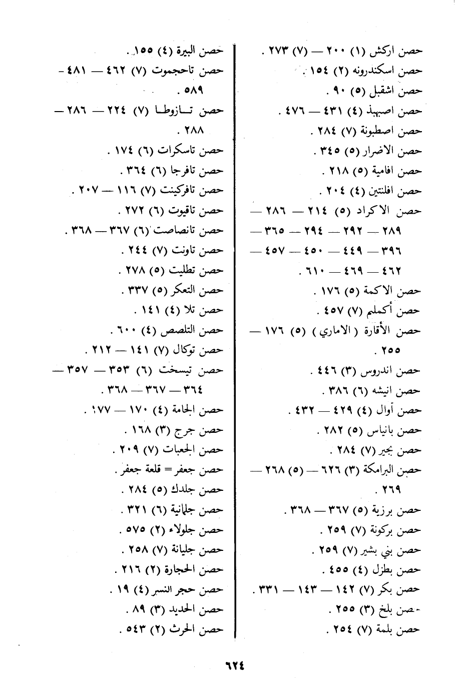 حصن الأكراد (5) 214- 286- 289- 292- 294- 365- 396- 449- 450- 457- 462- 469- 610.