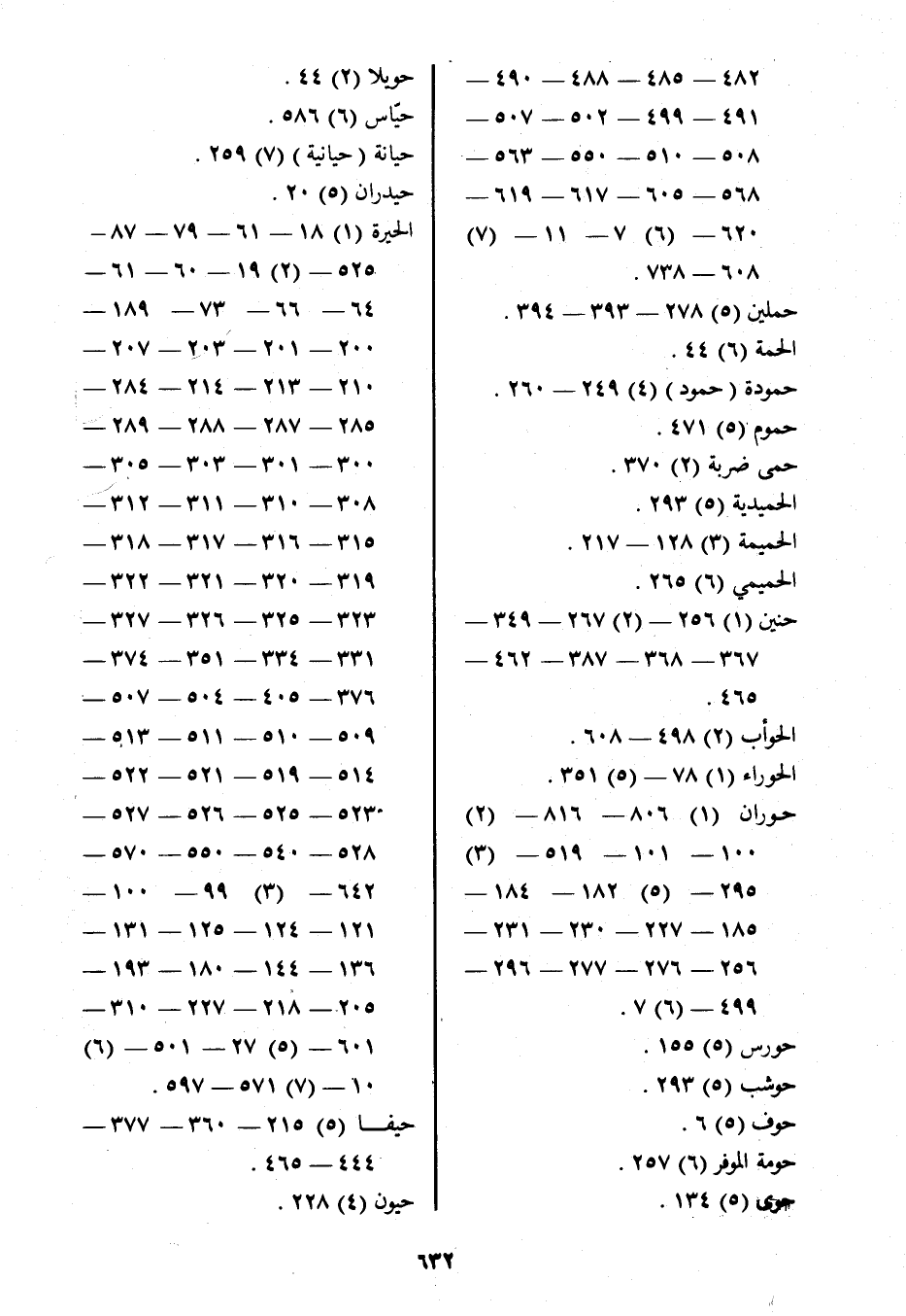 حوران (1) 806- 816- (2) 100- 101- 519- (3) 295- (5) 182- 184- 185- 227- 230- 231- 256- 276- 277- 296- 499- (6) 7.