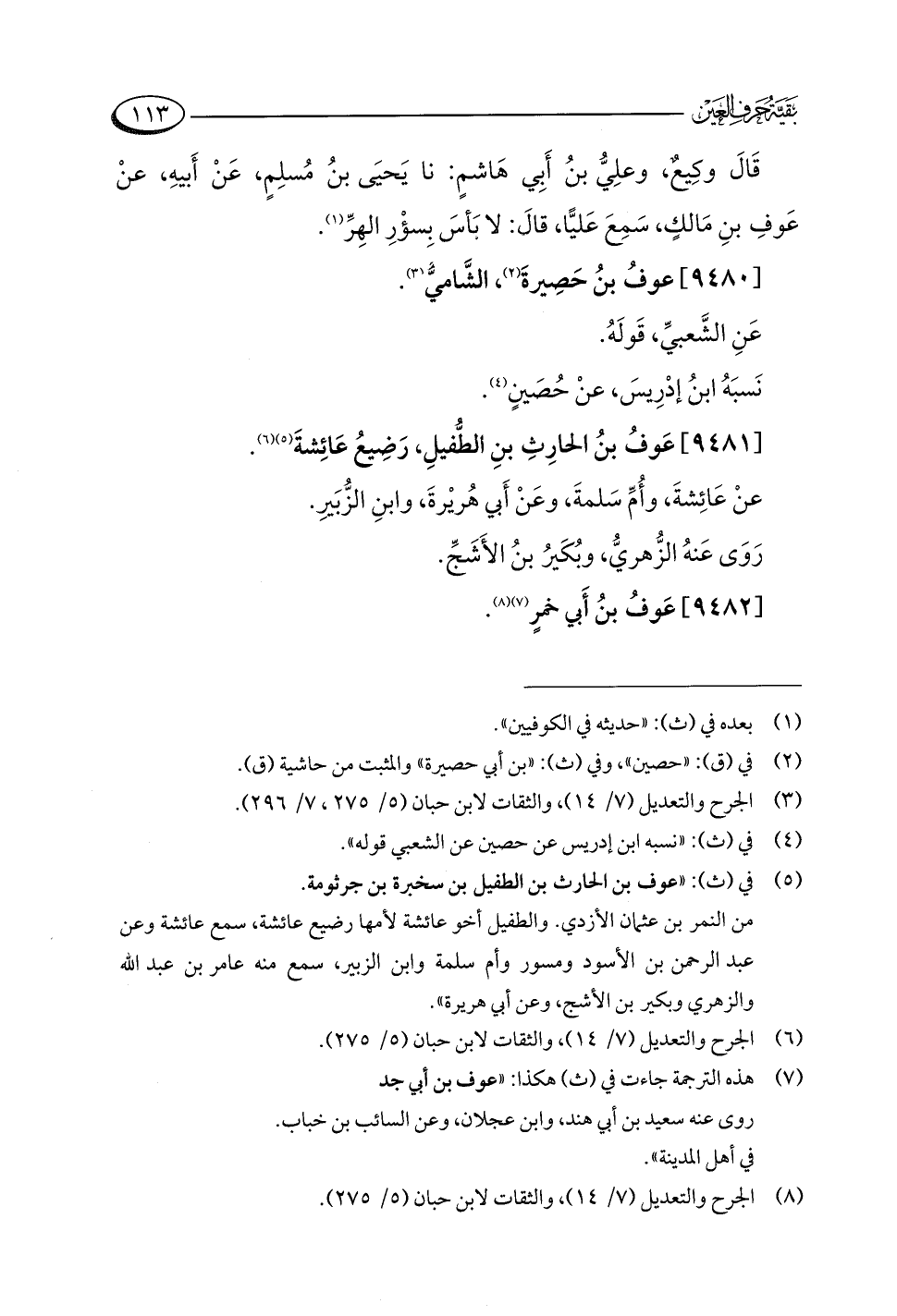 (¬٣) الجرح والتعديل (٧/ ١٤)، والثقات لابن حبان (٥/ ٢٧٥، ٧/ ٢٩٦).