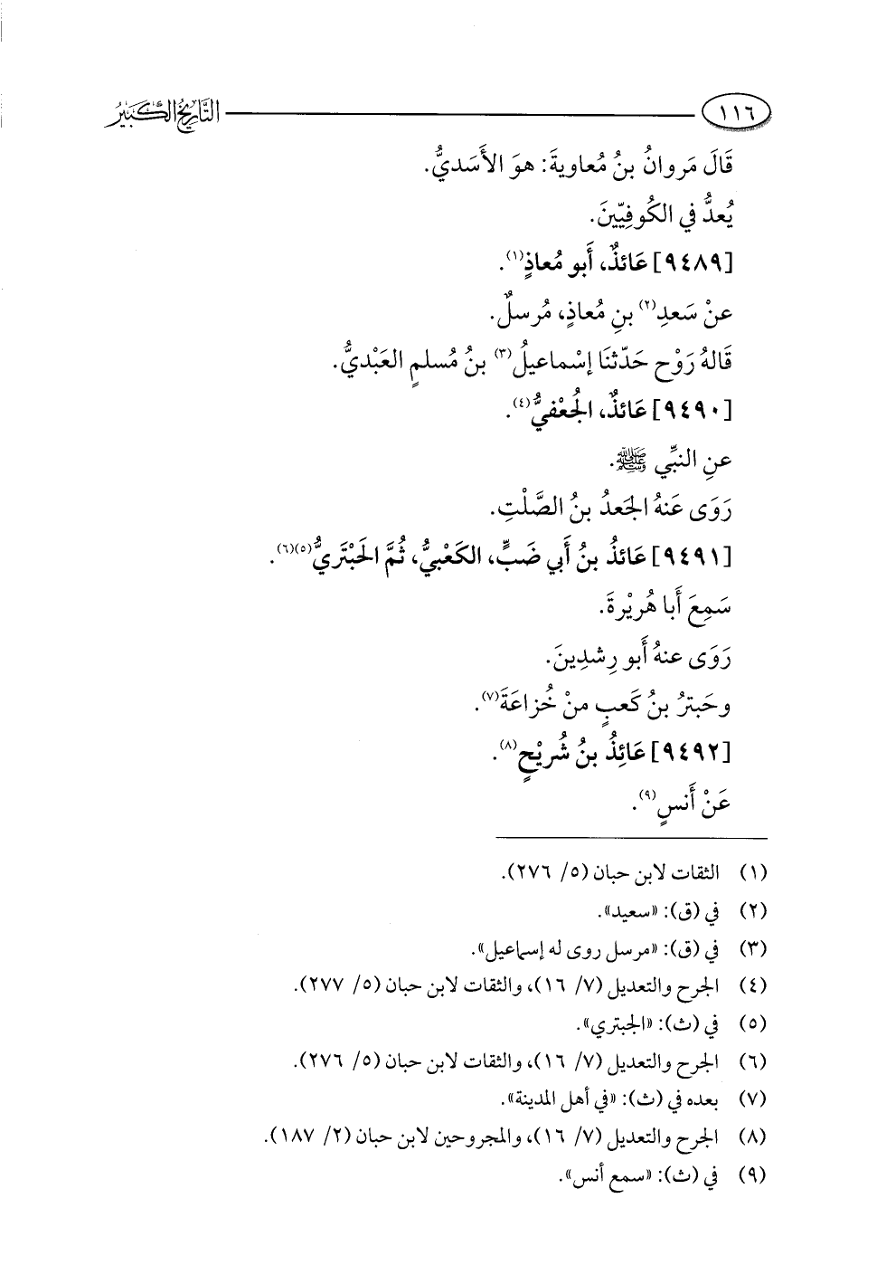 (¬٦) الجرح والتعديل (٧/ ١٦)، والثقات لابن حبان (٥/ ٢٧٦).