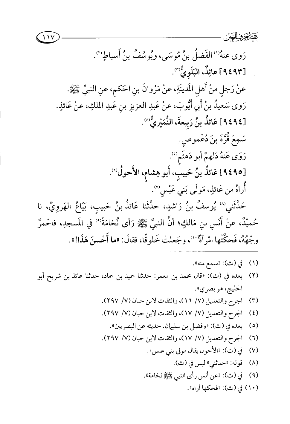 (¬٣) الجرح والتعديل (٧/ ١٦)، والثقات لابن حبان (٧/ ٢٩٧).