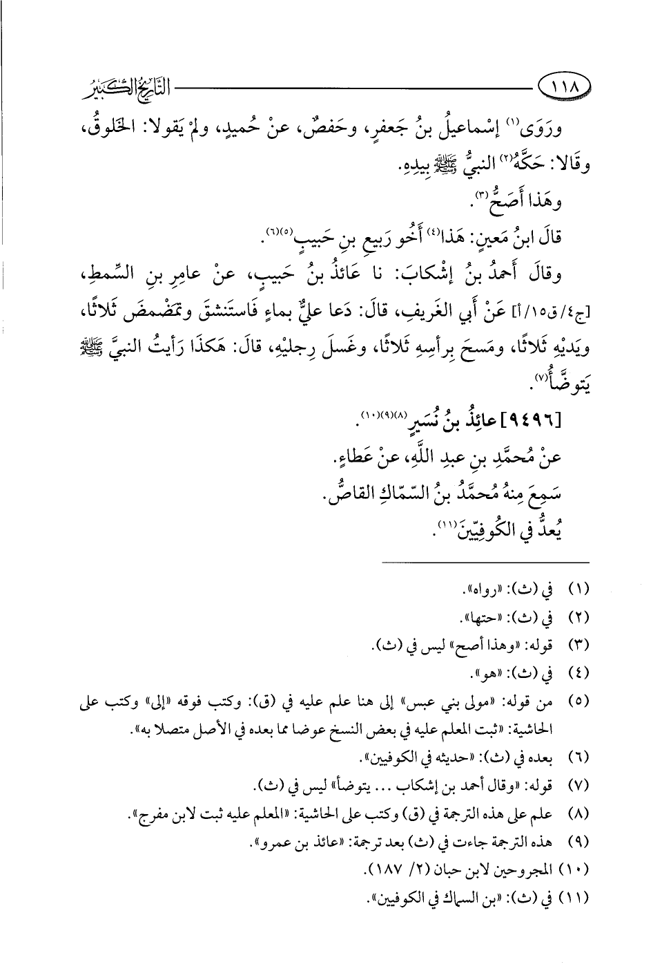 (¬٦) بعده في (ث): "حديثه في الكوفيين".