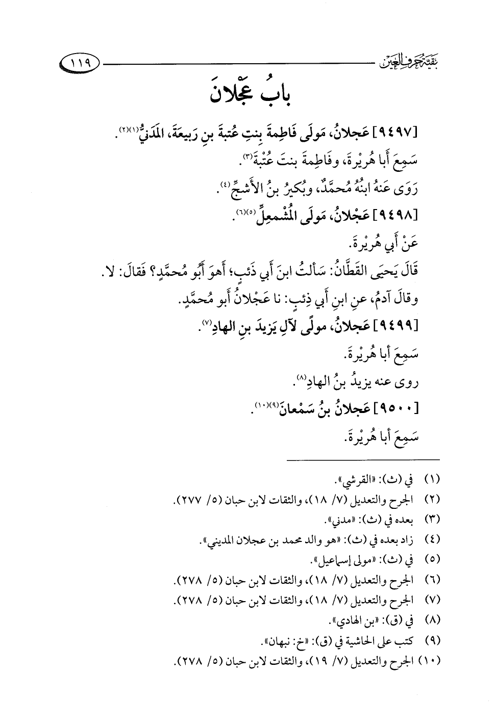 (¬١٠) الجرح والتعديل (٧/ ١٩)، والثقات لابن حبان (٥/ ٢٧٨).