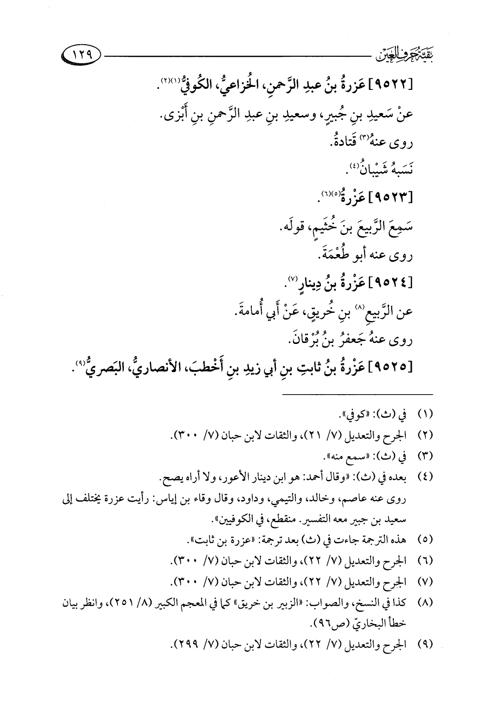 (¬٩) الجرح والتعديل (٧/ ٢٢)، والثقات لابن حبان (٧/ ٢٩٩).