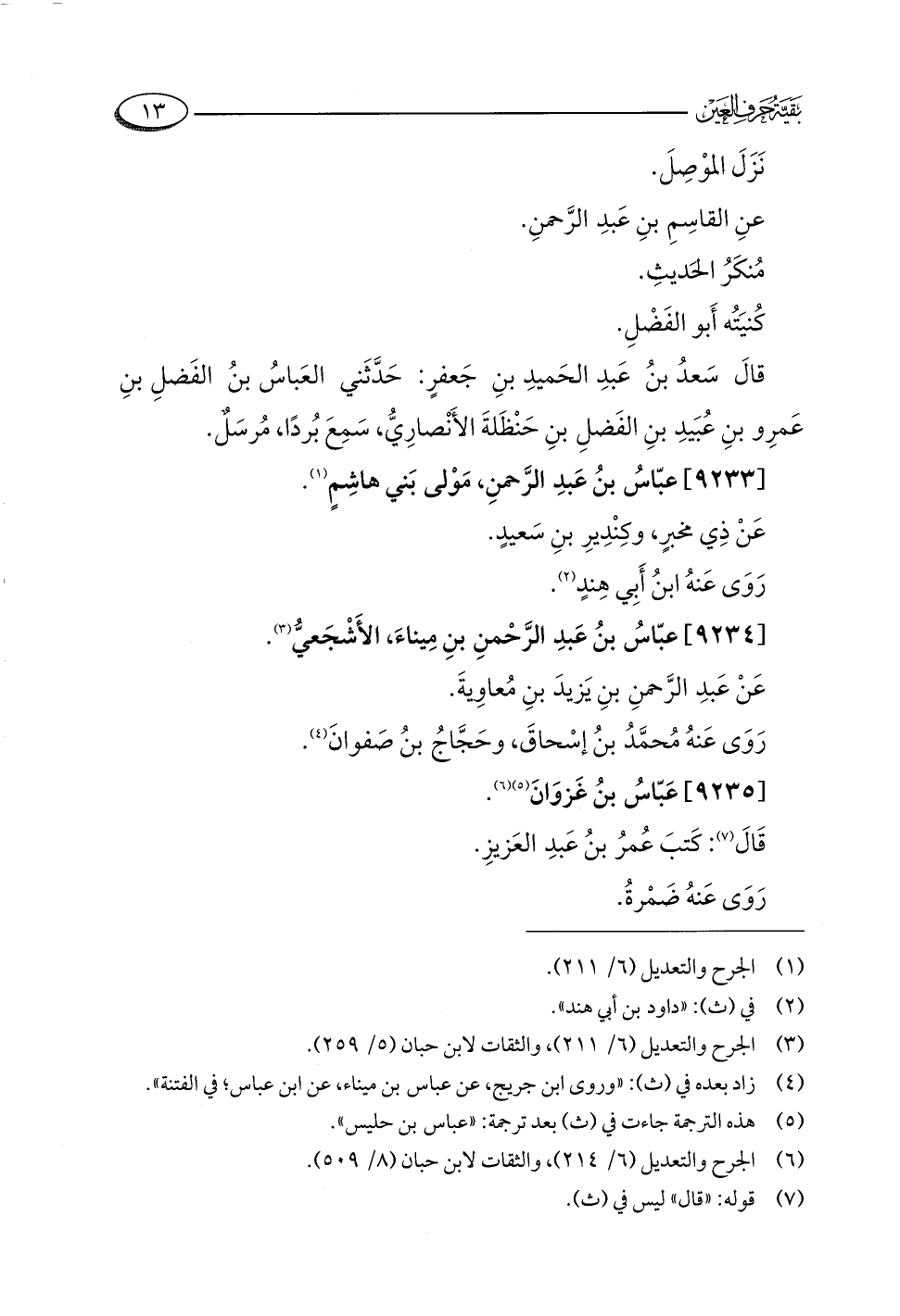 (¬٣) الجرح والتعديل (٦/ ٢١١)، والثقات لابن حبان (٥/ ٢٥٩).