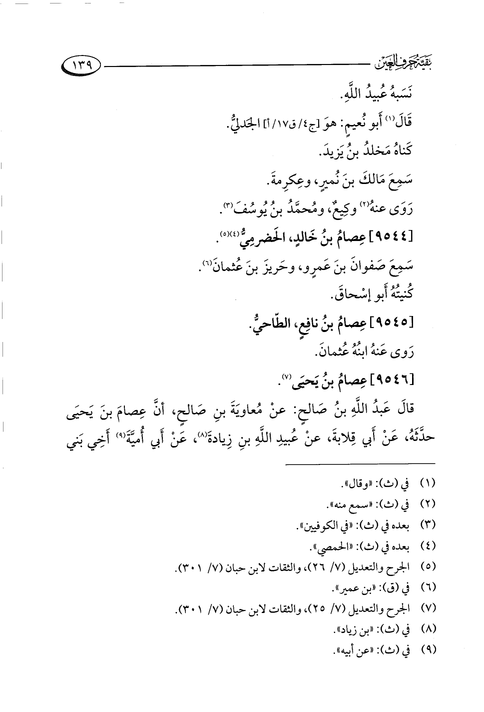(¬٥) الجرح والتعديل (٧/ ٢٦)، والثقات لابن حبان (٧/ ٣٠١).