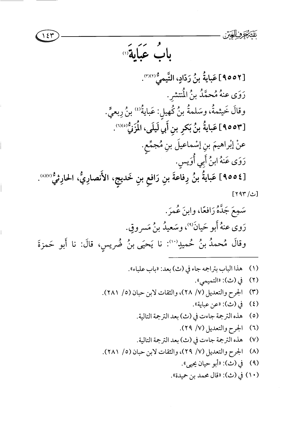 (¬٣) الجرح والتعديل (٧/ ٢٨)، والثقات لابن حبان (٥/ ٢٨١).