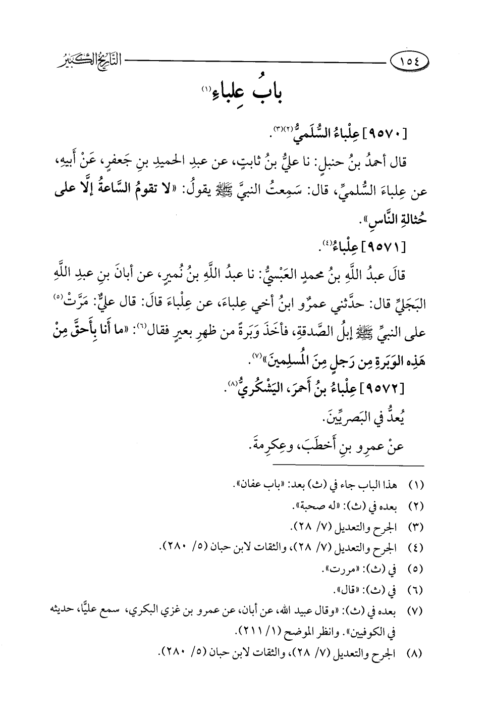 (¬٣) الجرح والتعديل (٧/ ٢٨).