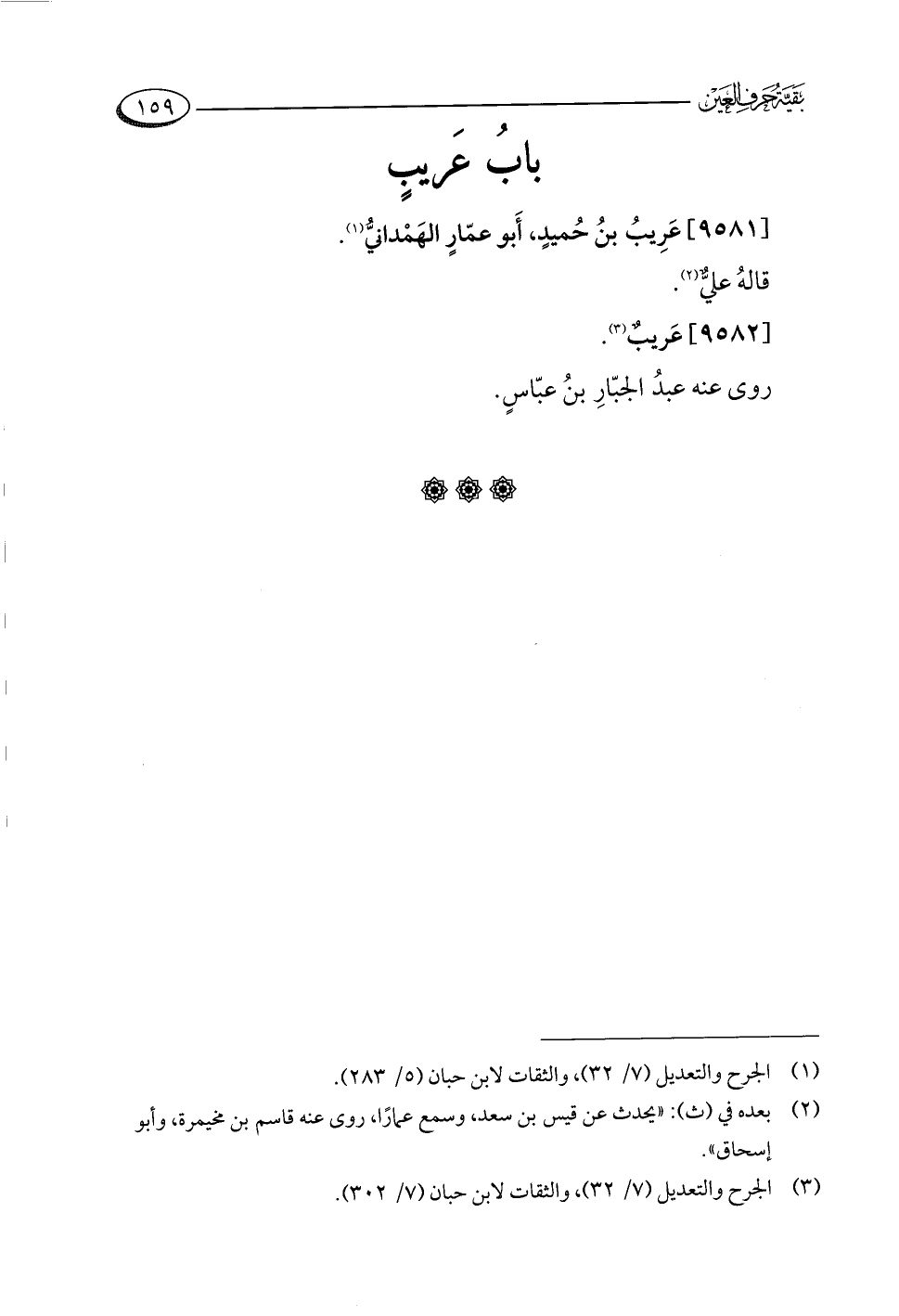 (¬٣) الجرح والتعديل (٧/ ٣٢)، والثقات لابن حبان (٧/ ٣٠٢).