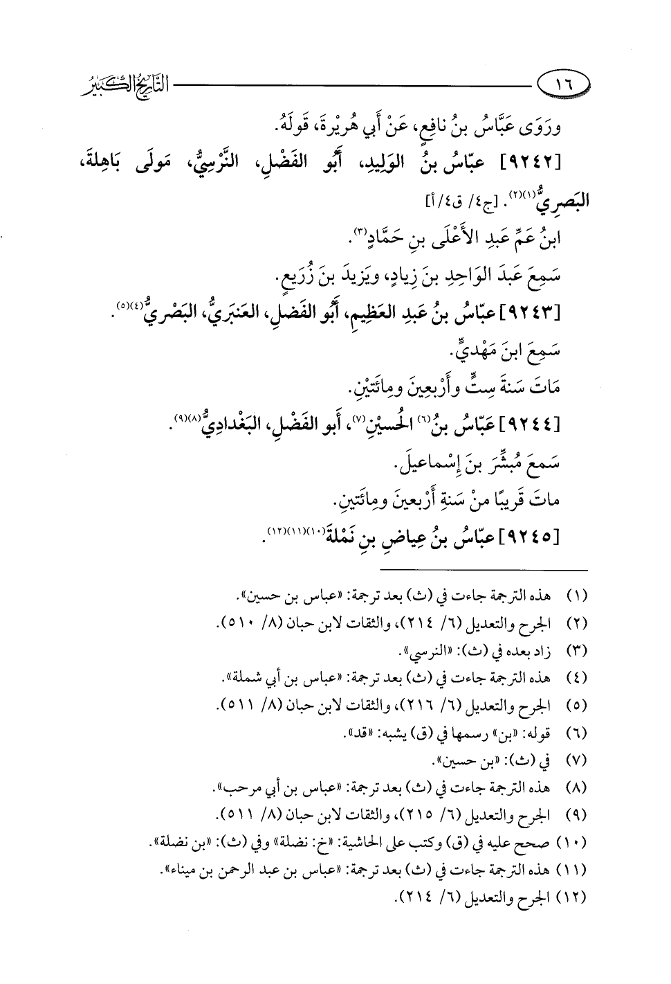 (¬١٢) الجرح والتعديل (٦/ ٢١٤).