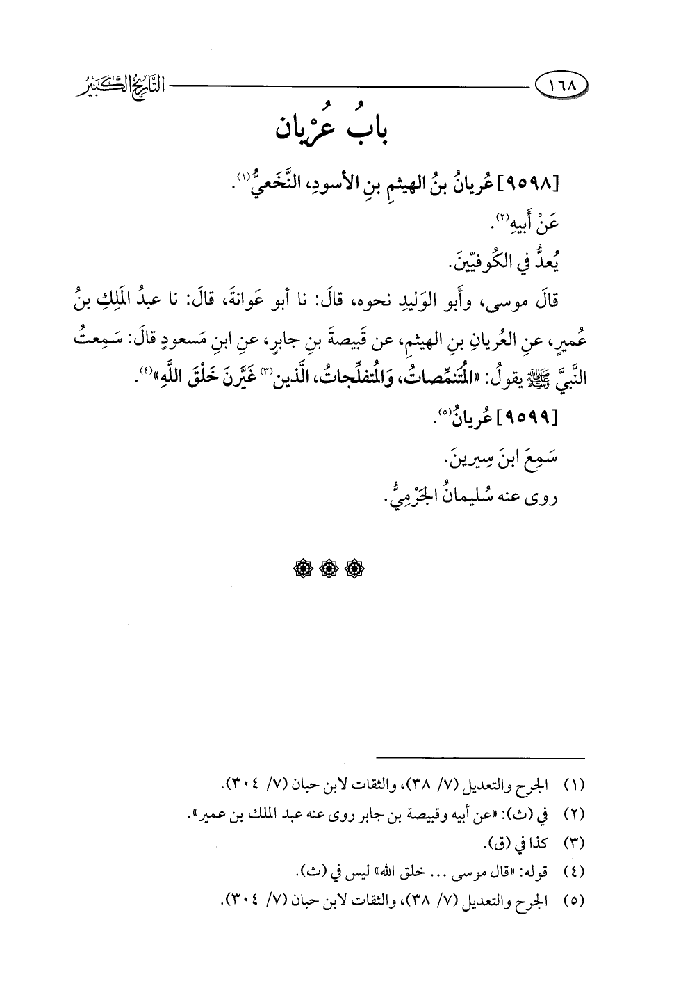 (¬٥) الجرح والتعديل (٧/ ٣٨)، والثقات لابن حبان (٧/ ٣٠٤).