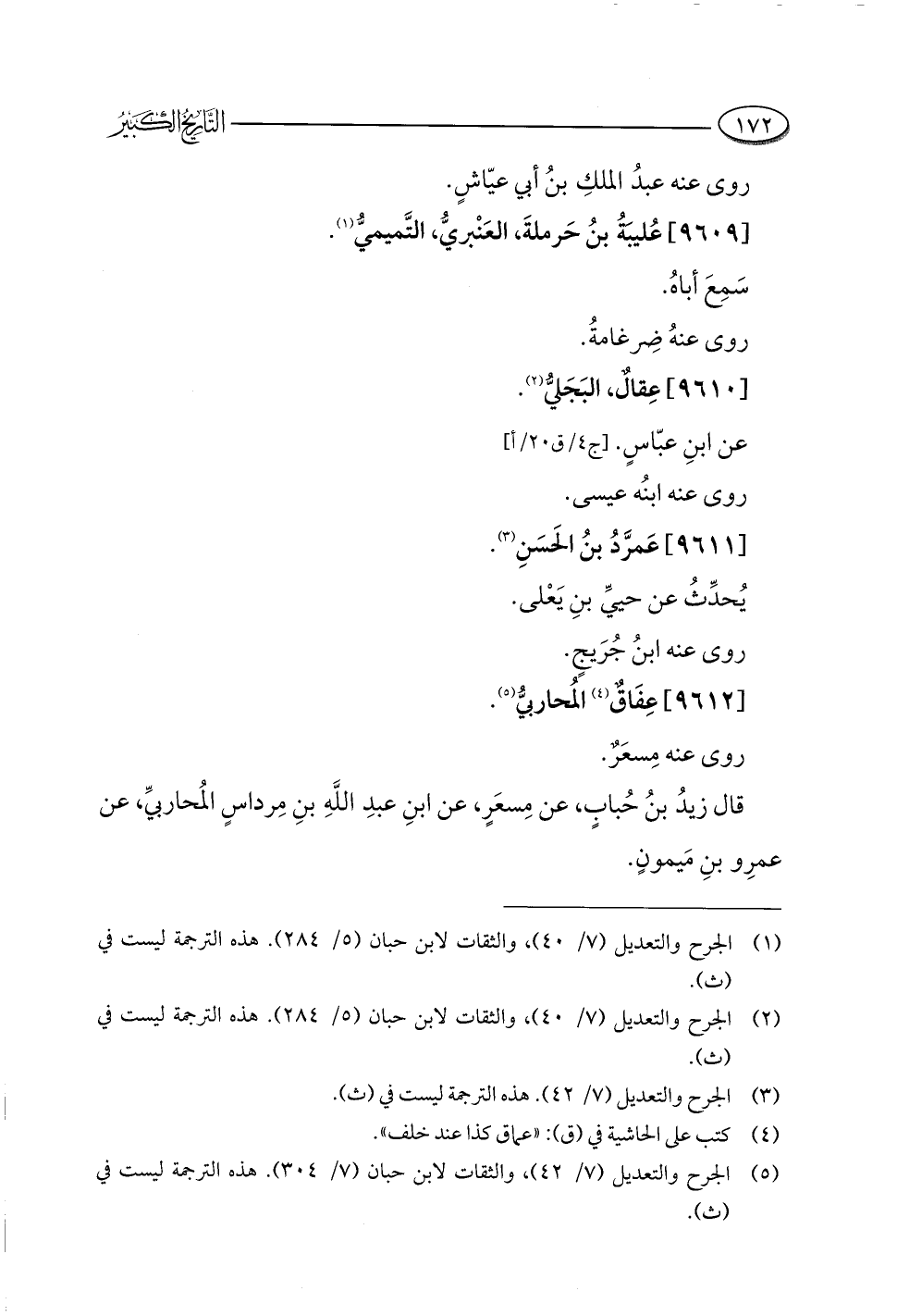 (¬٥) الجرح والتعديل (٧/ ٤٢)، والثقات لابن حبان (٧/ ٣٠٤). هذه الترجمة ليست في (ث).