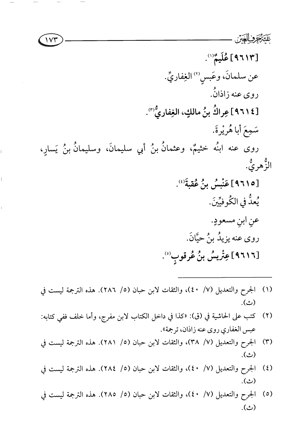 (¬٣) الجرح والتعديل (٧/ ٣٨)، والثقات لابن حبان (٥/ ٢٨١). هذه الترجمة ليست في (ث).