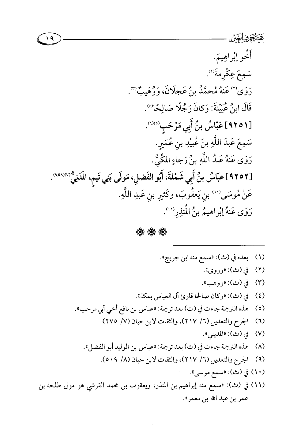 (¬٩) الجرح والتعديل (٦/ ٢١٧)، والثقات لابن حبان (٨/ ٥٠٩).