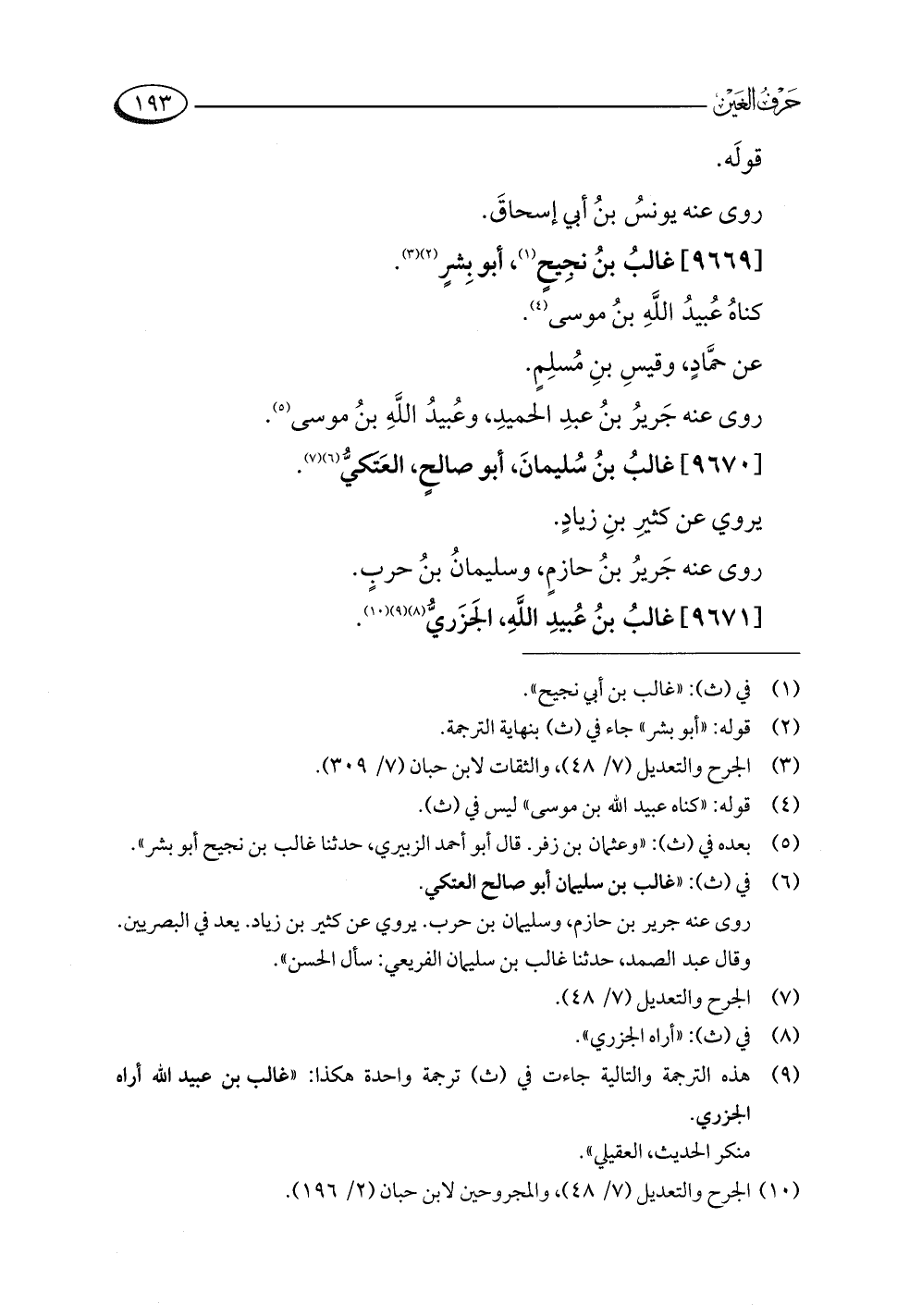 [٩٦٧١] غالبُ بنُ عُبيدِ اللَّهِ، الجَزَريُّ (¬٨) (¬٩) (¬١٠).