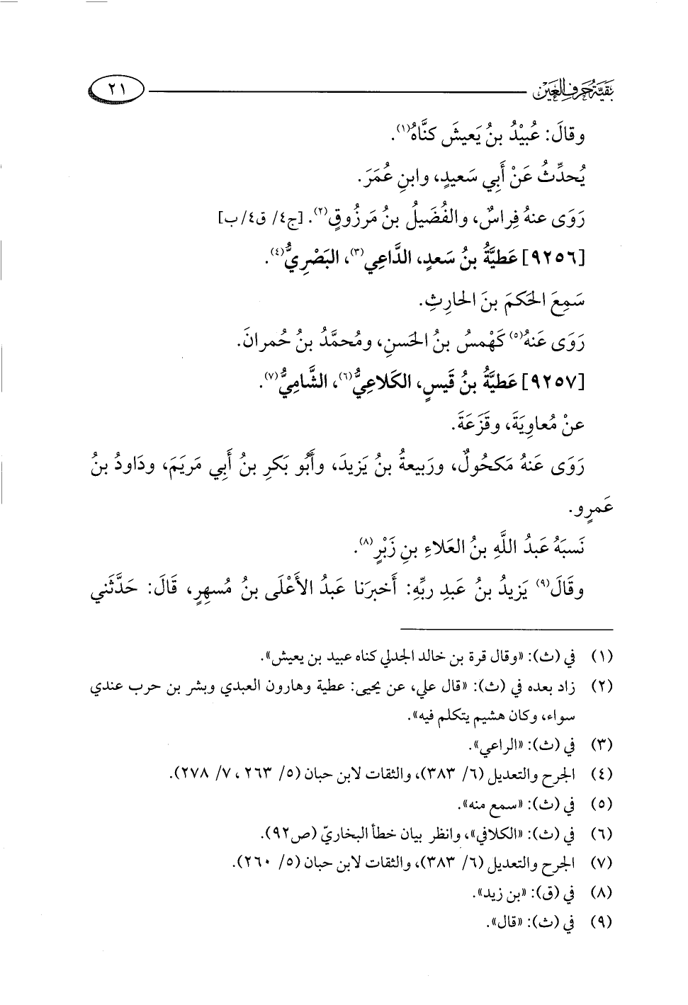 (¬٤) الجرح والتعديل (٦/ ٣٨٣)، والثقات لابن حبان (٥/ ٢٦٣، ٧/ ٢٧٨).