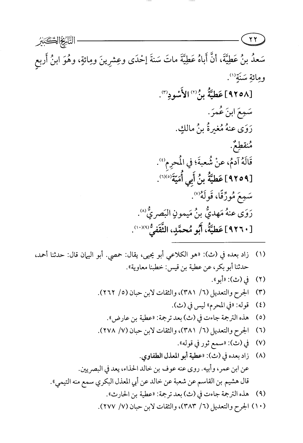 (¬٩) هذه الترجمة جاءت في (ث) بعد ترجمة: "عطية بن الحارث".