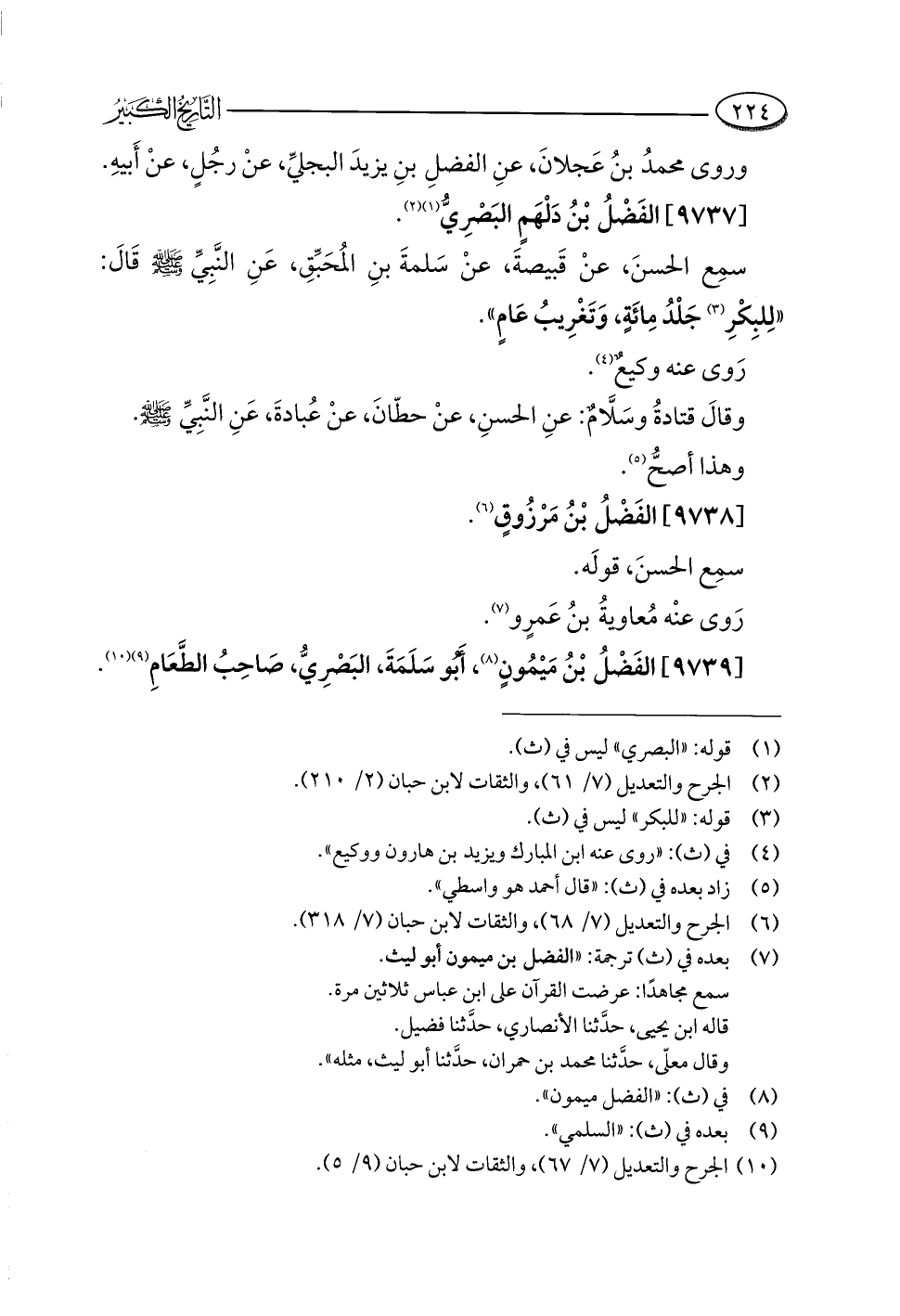 (¬١٠) الجرح والتعديل (٧/ ٦٧)، والثقات لابن حبان (٩/ ٥).