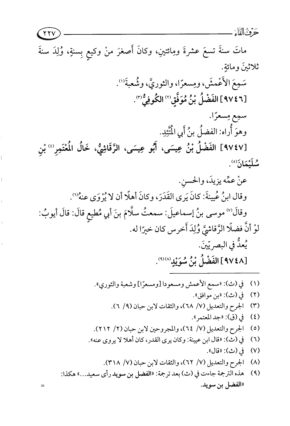 (¬٩) هذه الترجمة جاءت في (ث) بعد ترجمة: "الفضل بن سويد رأى سعيد. . . " هكذا: