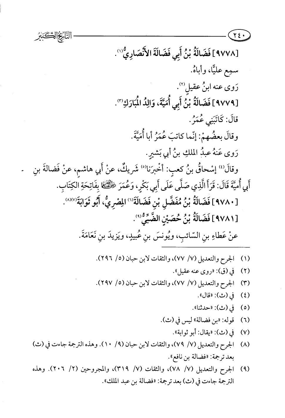 (¬٨) الجرح والتعديل (٧/ ٧٩)، والثقات لابن حبان (٩/ ١٠). وهذه الترجمة جاءت في (ث) بعد ترجمة: "فضالة بن نافع".