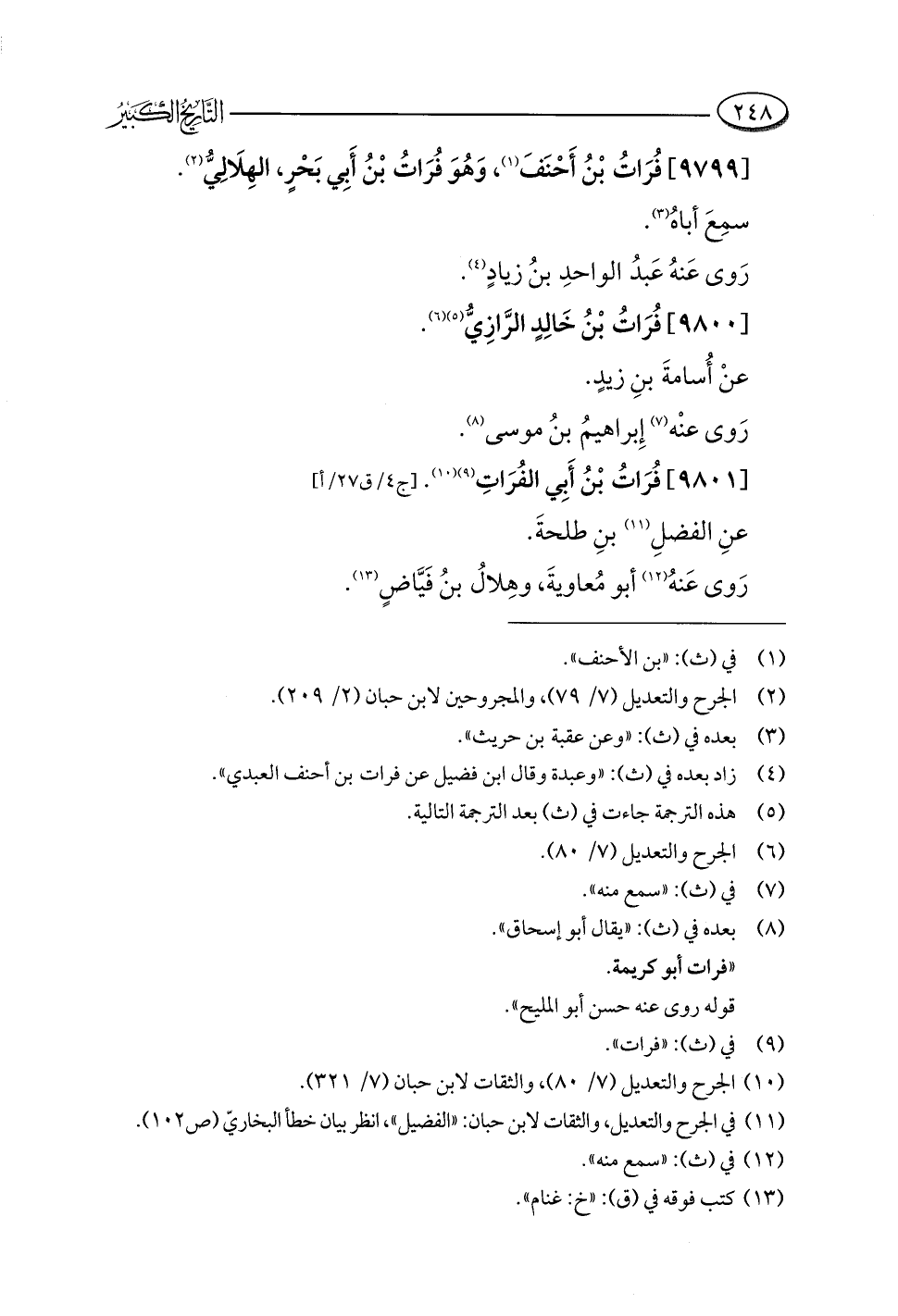 (¬١٠) الجرح والتعديل (٧/ ٨٠)، والثقات لابن حبان (٧/ ٣٢١).