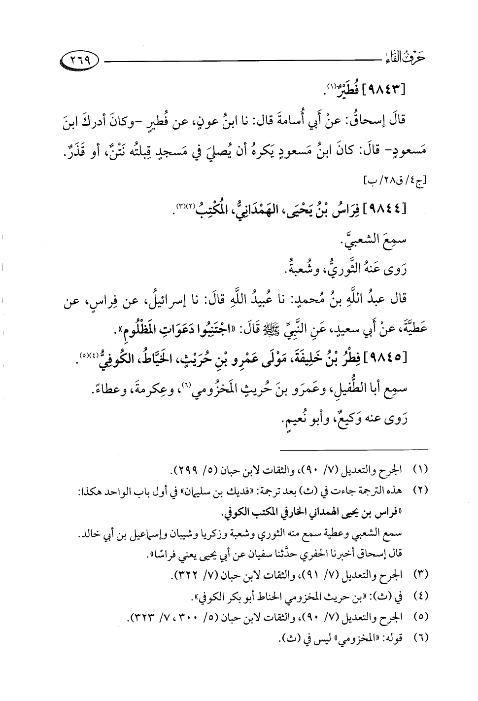 (¬٥) الجرح والتعديل (٧/ ٩٠)، والثقات لابن حبان (٥/ ٣٠٠، ٧/ ٣٢٣).