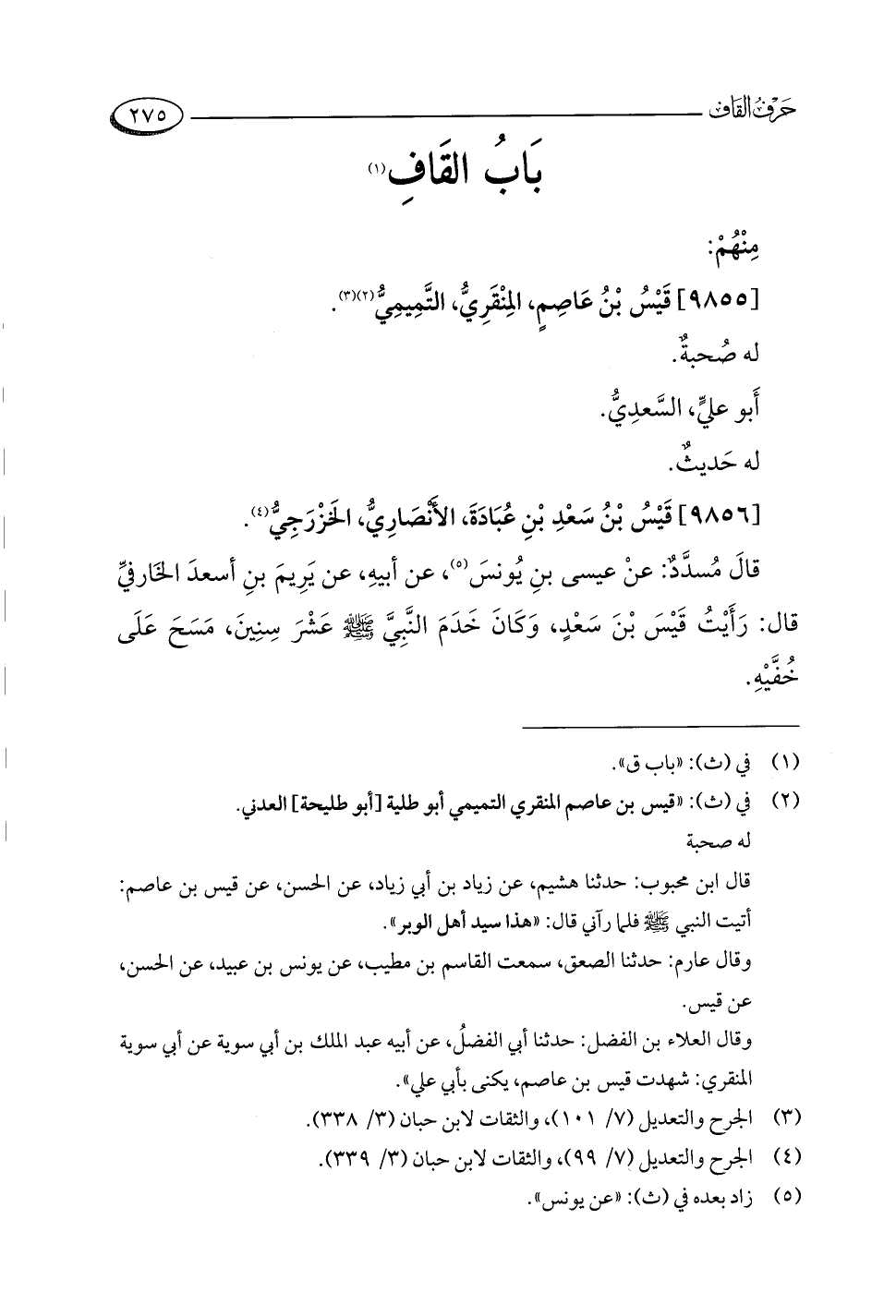 (¬٣) الجرح والتعديل (٧/ ١٠١)، والثقات لابن حبان (٣/ ٣٣٨).