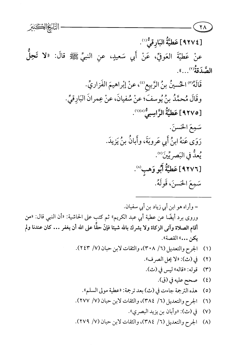 (¬٨) الجرح والتعديل (٦/ ٣٨٤)، والثقات لابن حبان (٧/ ٢٧٩).